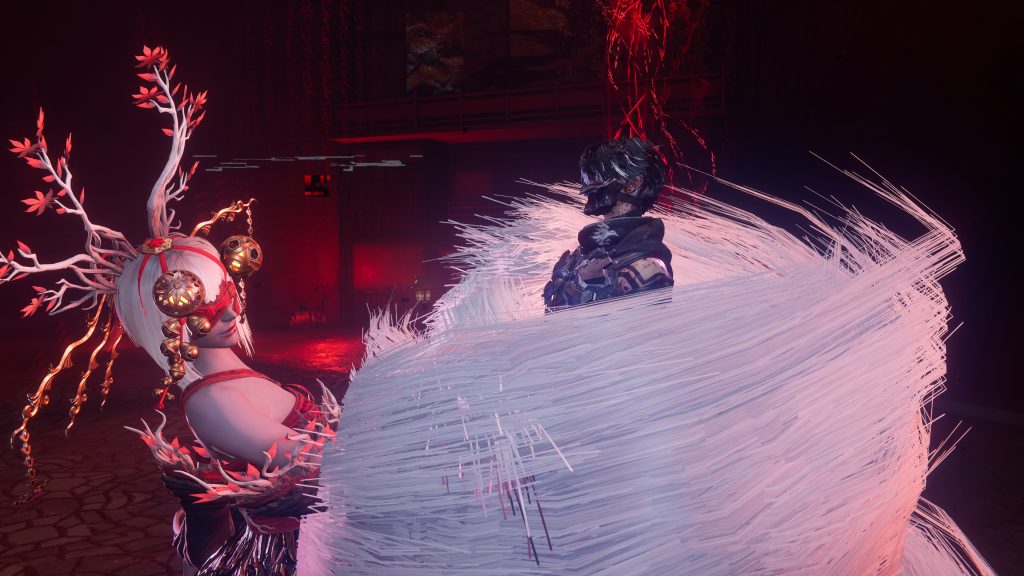 そして、序盤のボス「龍神党軍将」と「月虹の女狐」はまさにそのハイスピードな駆け引きの学習にうってつけのボスにしています。龍神党軍将は、ボスとの基本的な攻防のやりとりから、今作での大事なシステム「崩撃」の重要さをしっかりと教えてくれます。月虹の女狐は、龍神党軍将に前述した妖魔の要素を取り入れて、応用編のようなポジションになっています。鵺の型や鴉忍具をさらに臨機応変に使っていくことで有利に戦闘を進めていくことができるようになっています。